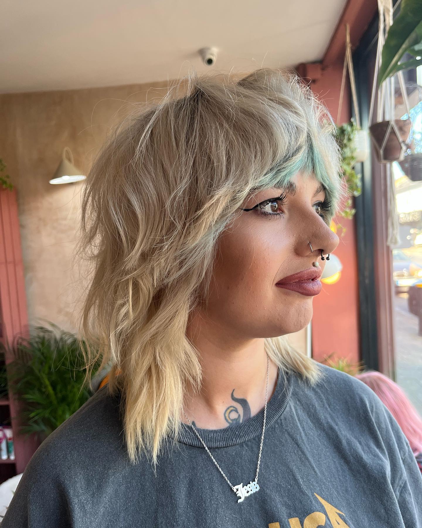 The platinum blonde shag with layers around the top and middle of your face is a total statement! If you enjoy wispy bangs and think blonde hair is the right move for you this season, why not book this one ASAP?!