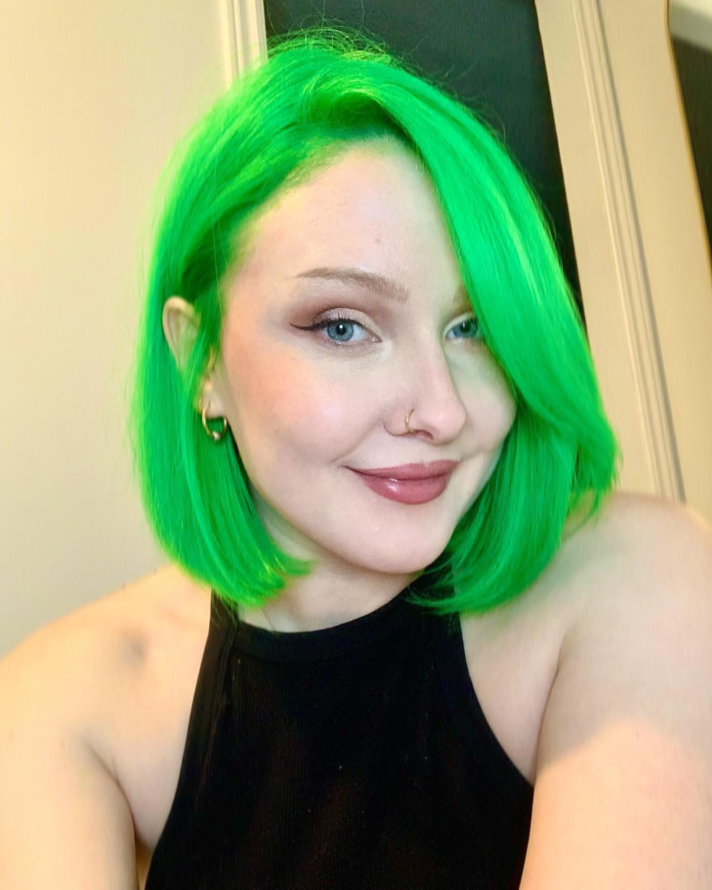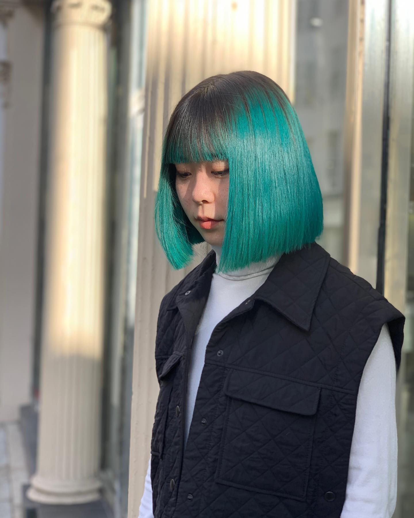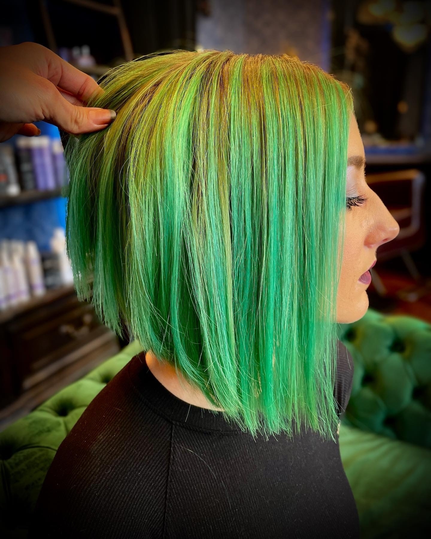 A cool, detailed green bob that is perfect for teens and younger women who want to make a splash.