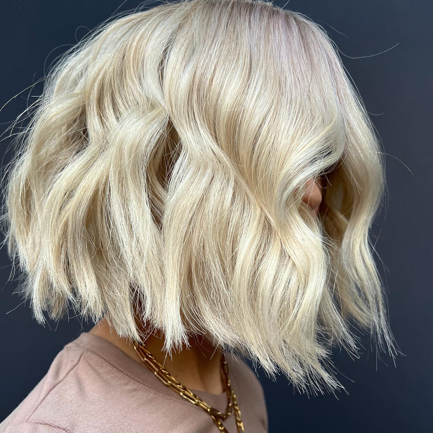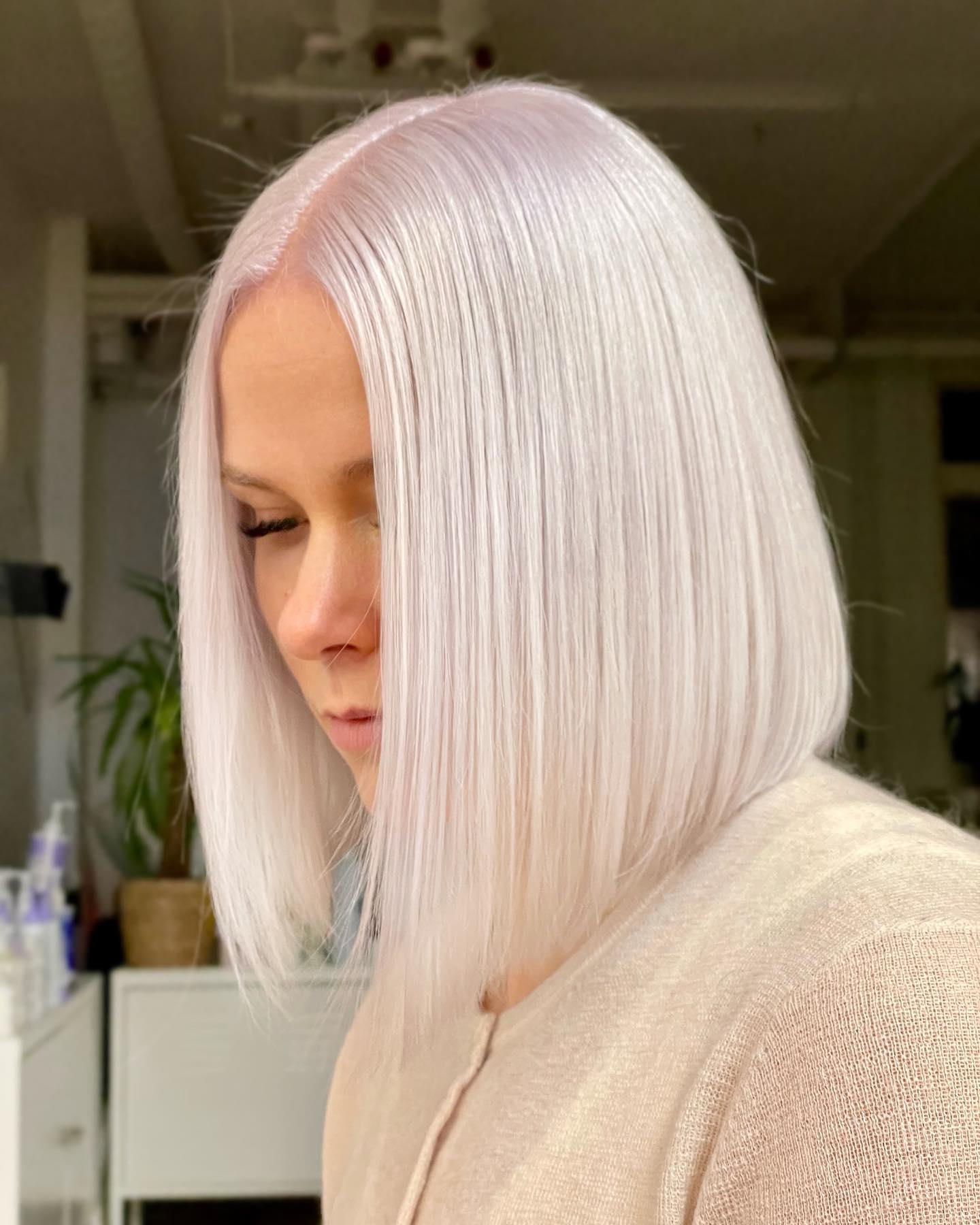 A cute blonde platinum bob that looks amazing, no matter your age group. It’s so timeless.