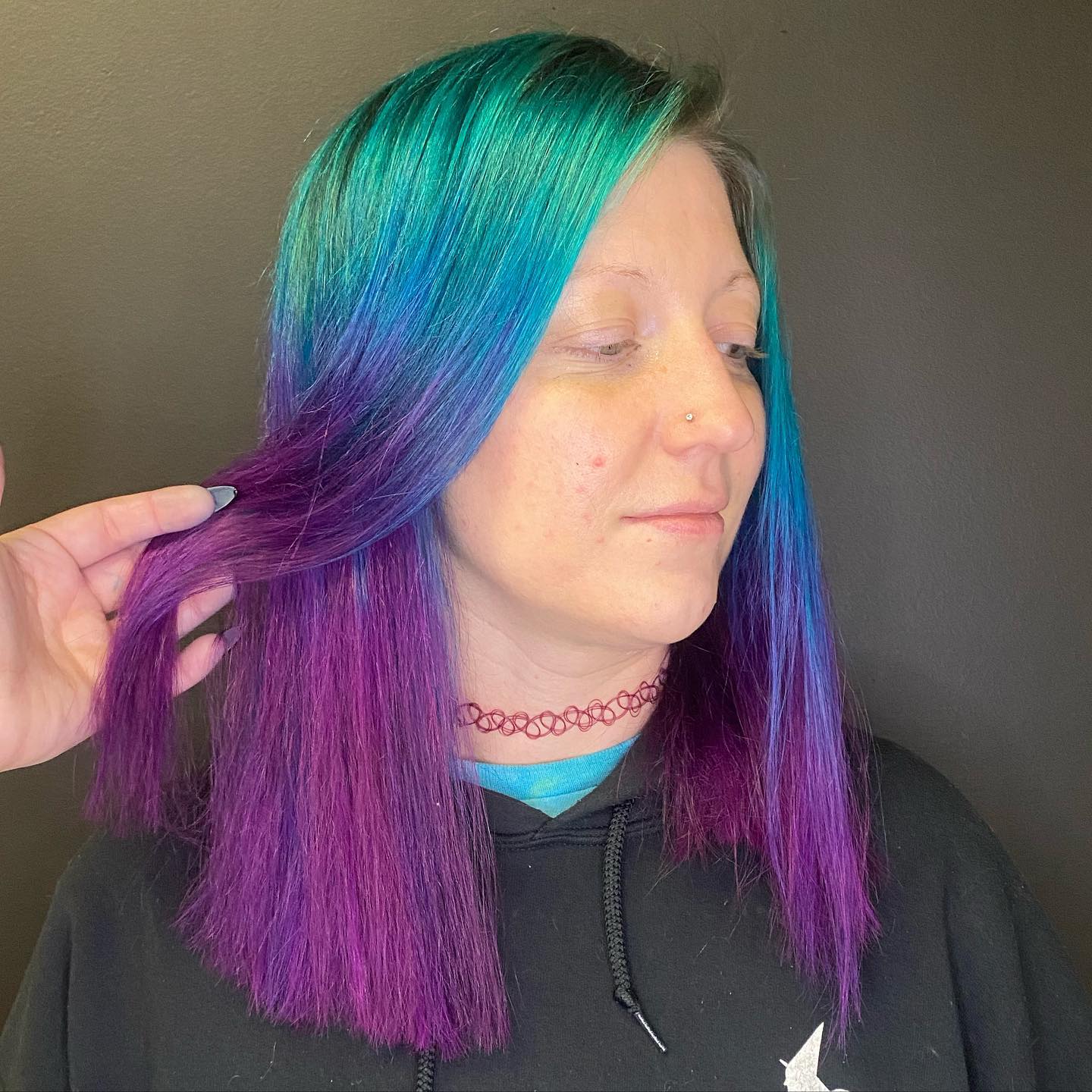 To maintain this one of a kind color, make sure you’re coloring your hair every four weeks.