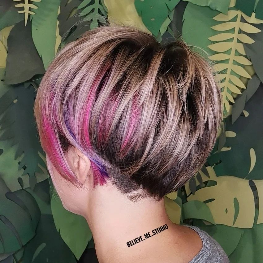 A defined pink bob with some black color elements is so playful and attention-seeking.