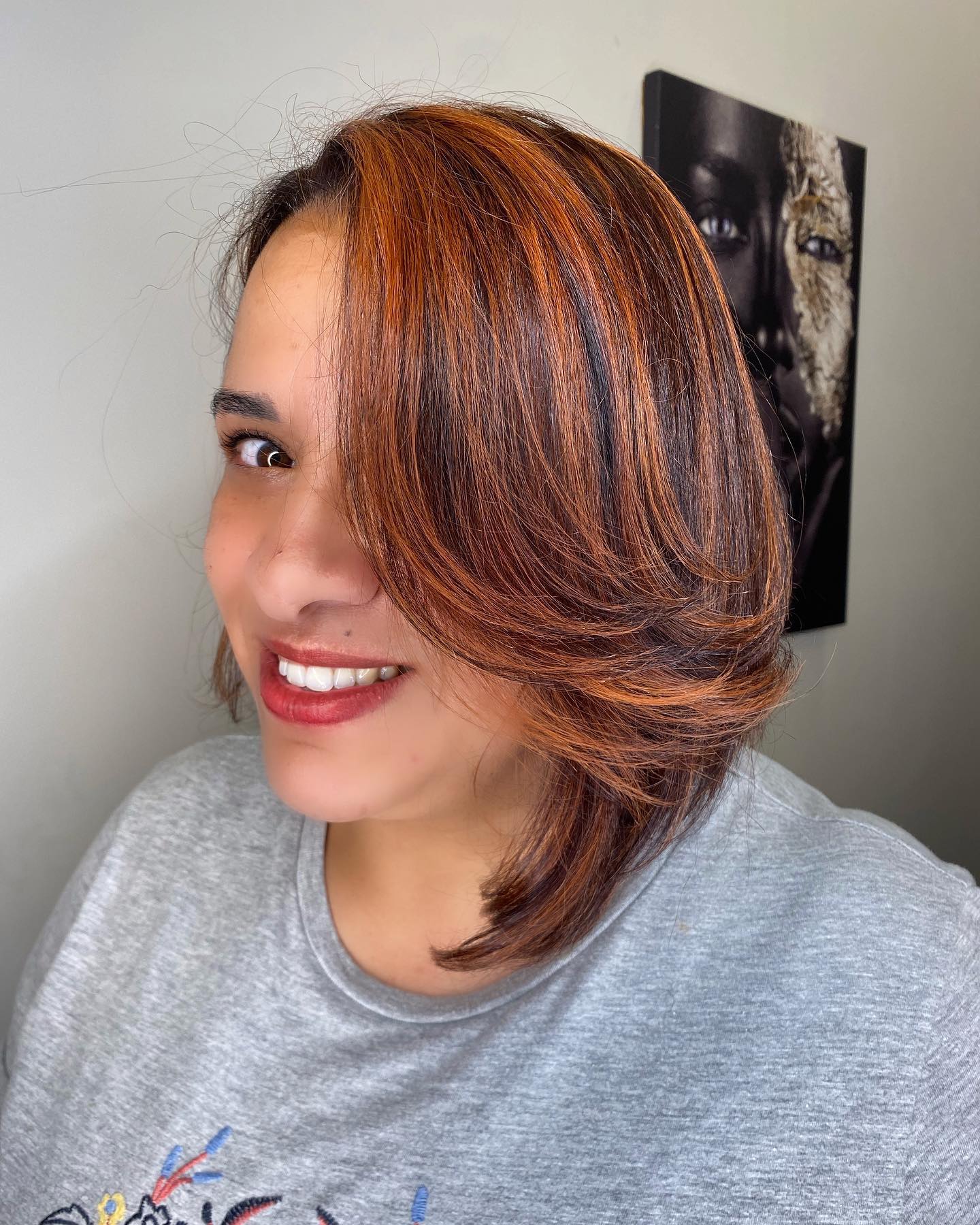 You are going to adore this defined orange straight bob. It’s such a great look for everyday wear and has that perfectly put-together vibe without trying too hard.