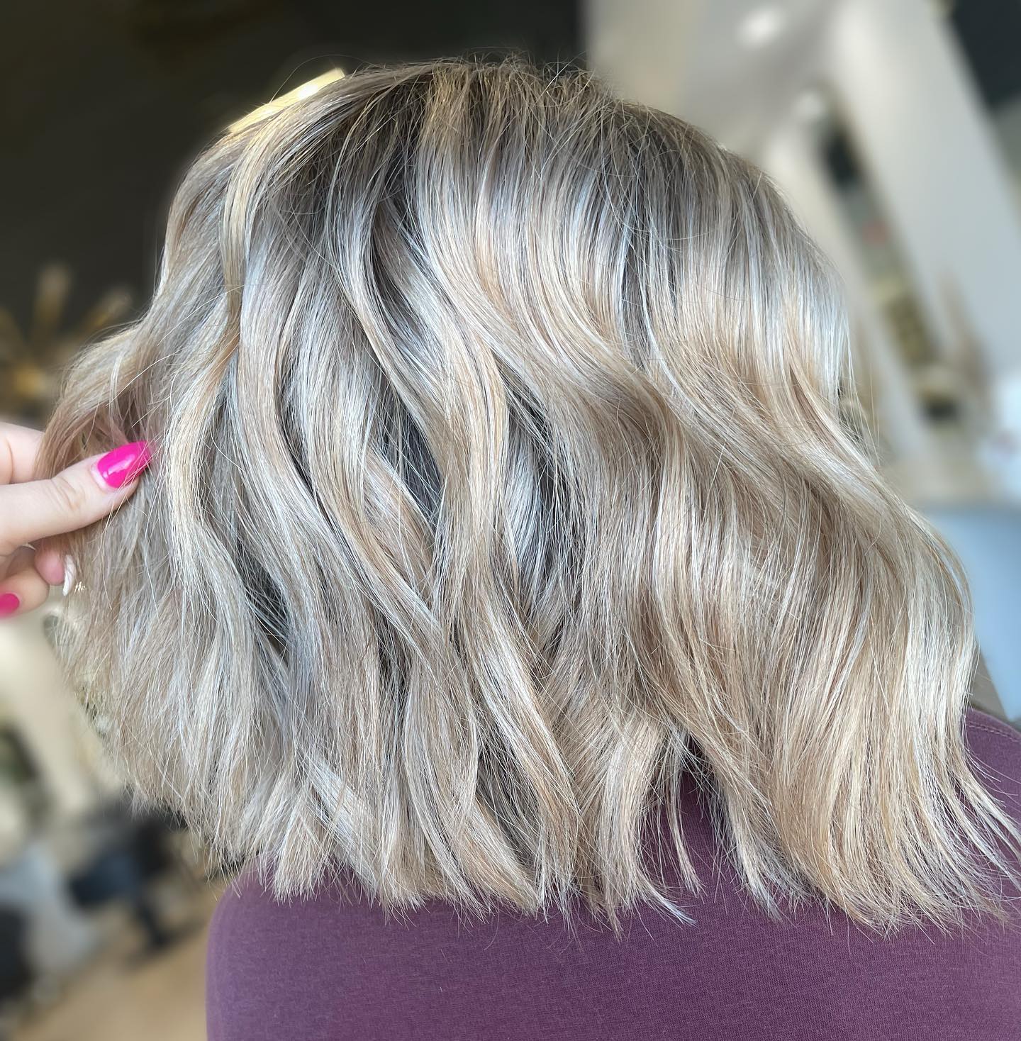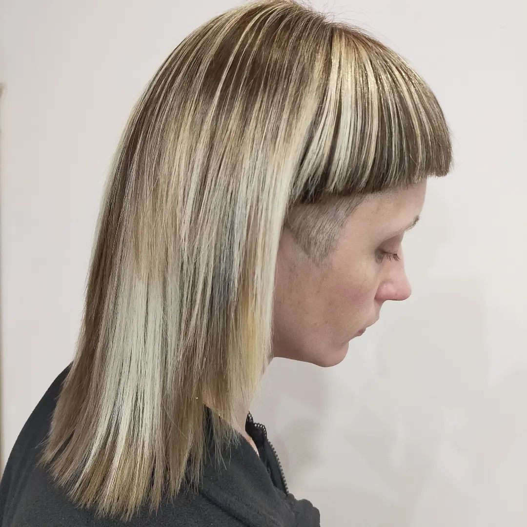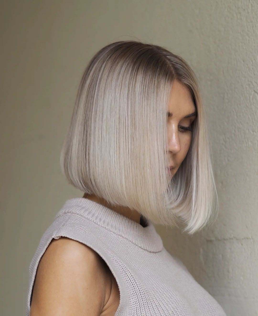 I am obsessed with this defined A-line bob. The bleached blonde is so elegant and is the perfect choice for women who want to make a statement with their hair.
