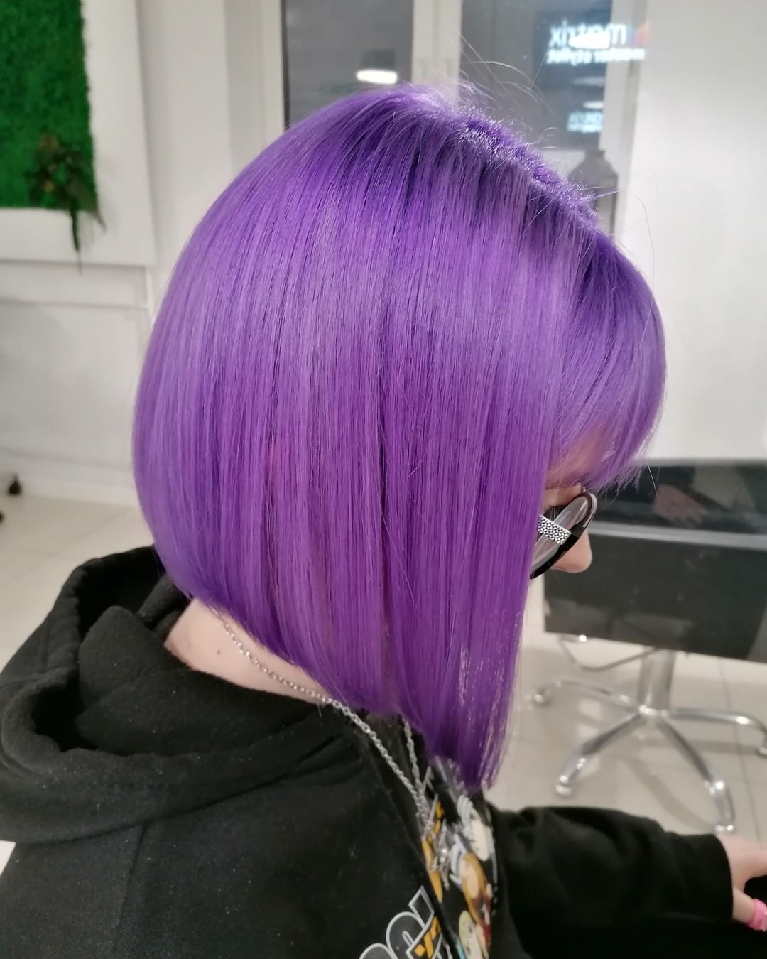 Ready for a pop of color? This purple bob will make you look like a true retro, playful lady.
