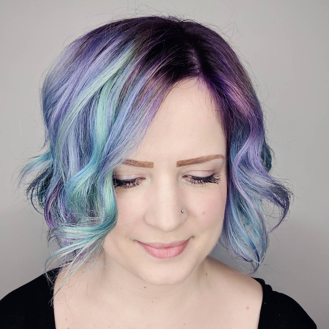 I am getting major mermaid vibes from this opal bob. It combines blues, purples, and soft greens for a look that is absolutely magical.