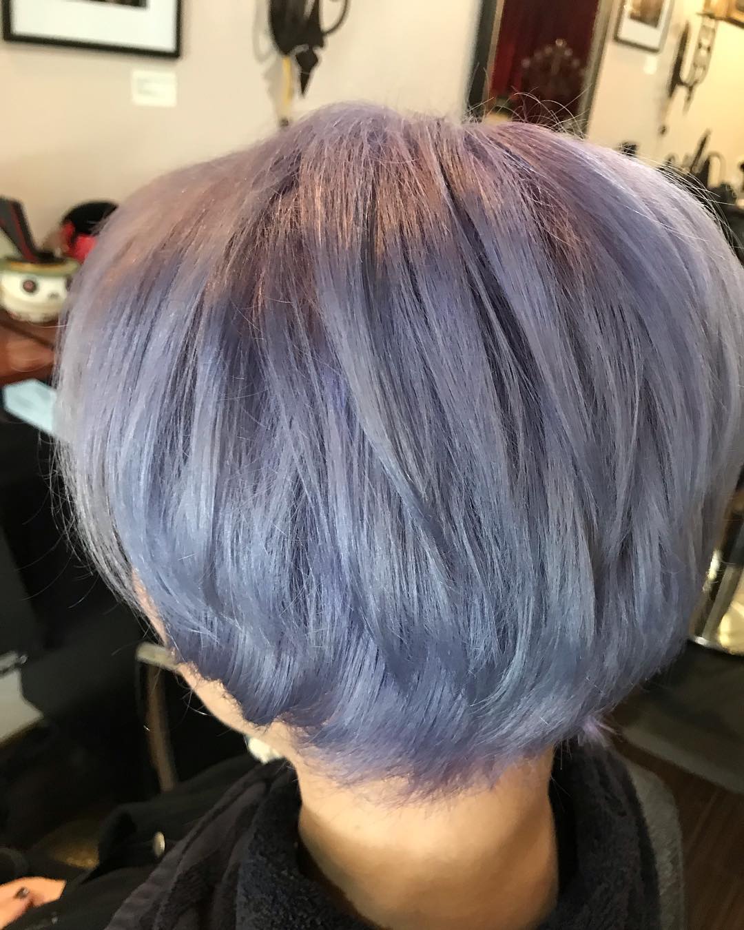 A rounded bob is such a classic, and it looks absolutely gorgeous with this lovely lilac color. It’s a match made in heaven.