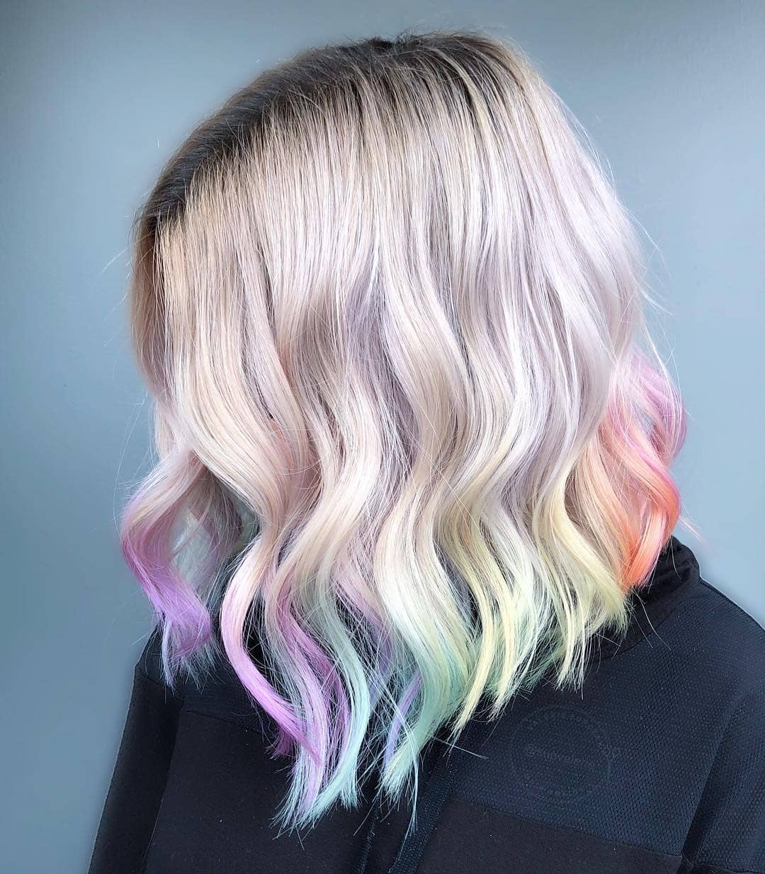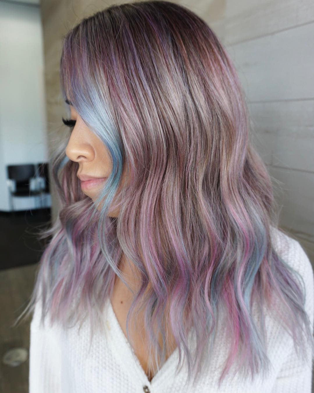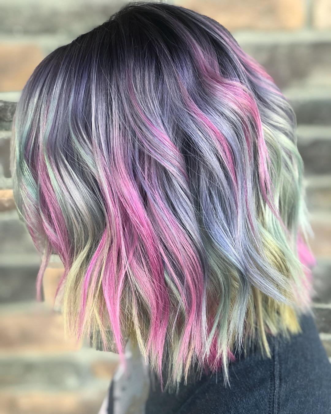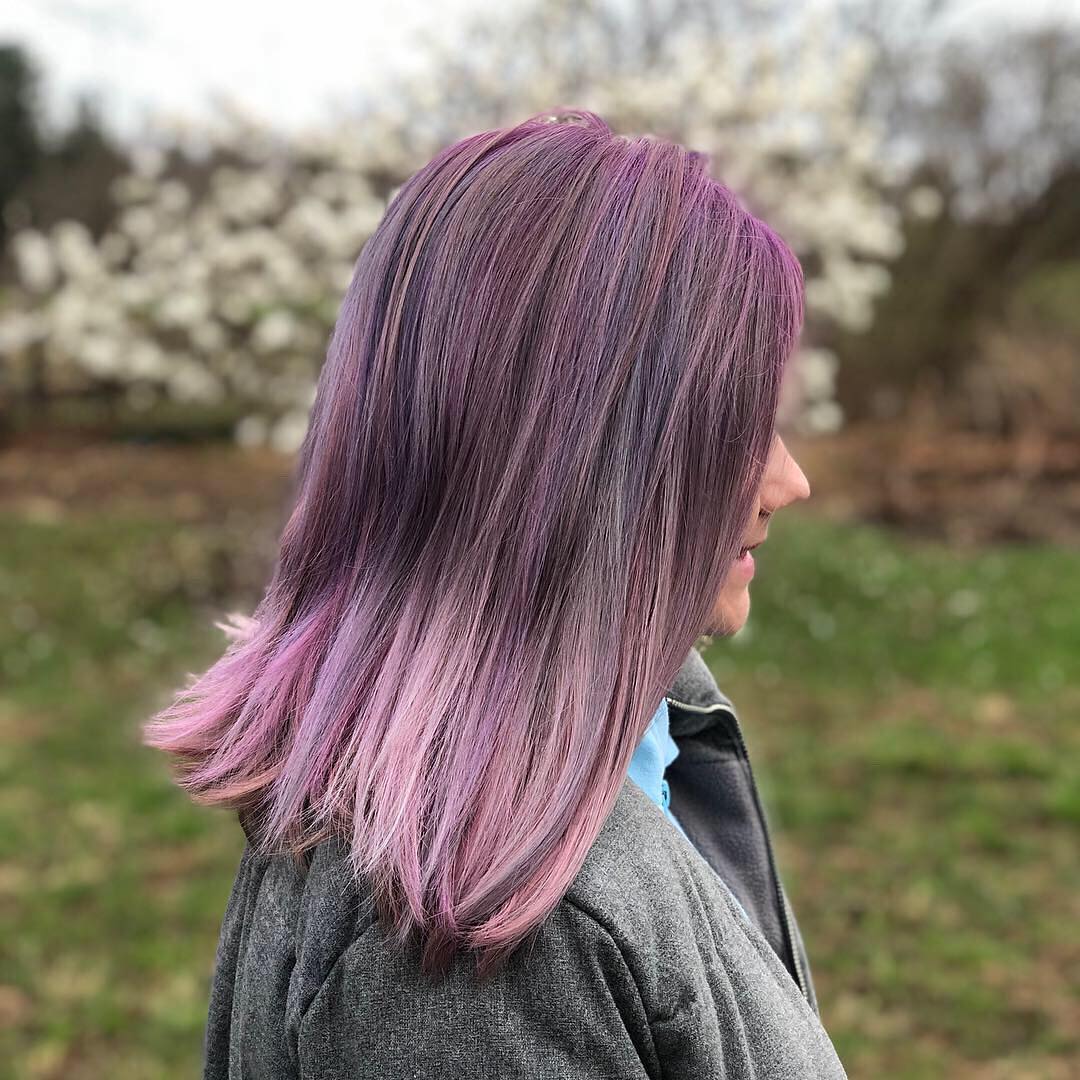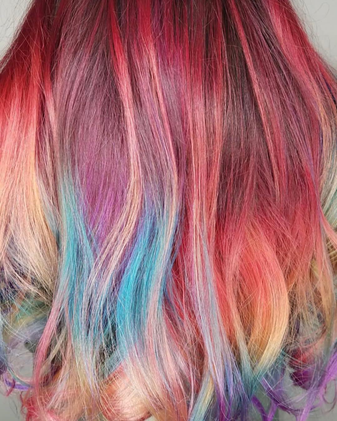 The mixture of blues, purples, and pinks in this color will instantly bring a party to your hair. It’s such a vibrant and joyful look.