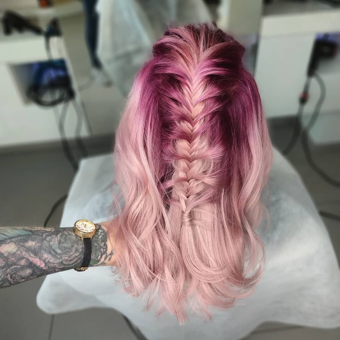 You don’t have to go all-in to have fun with pastels. Keep your natural color flowing and mix in some beautiful pastel pink for a gorgeous pop of color.