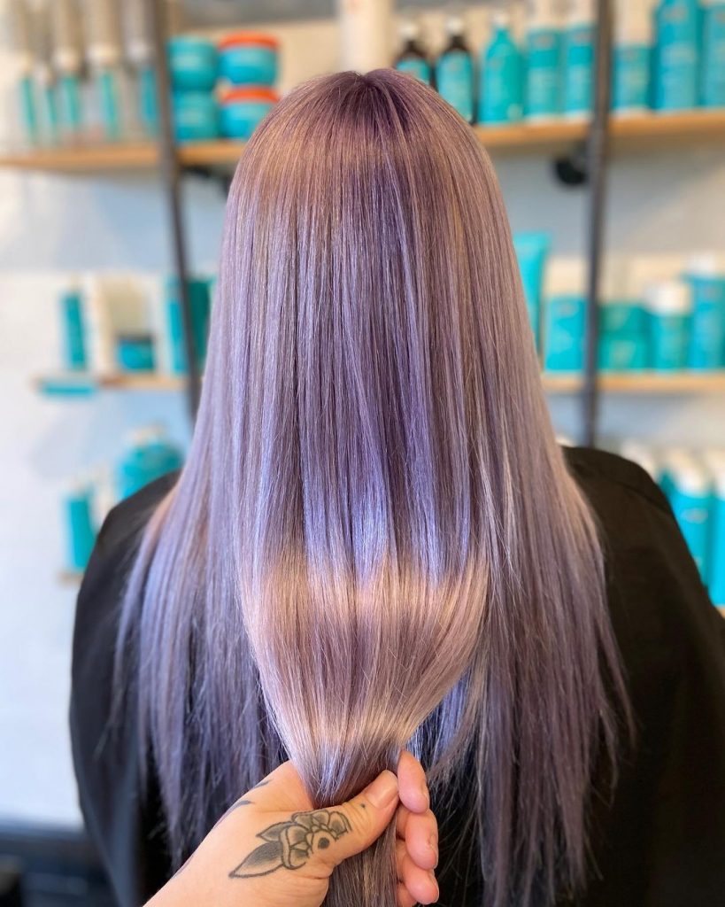 This blush purple shade will look absolutely perfect on your newly transformed hair. It’s soft, feminine, and just so pretty.