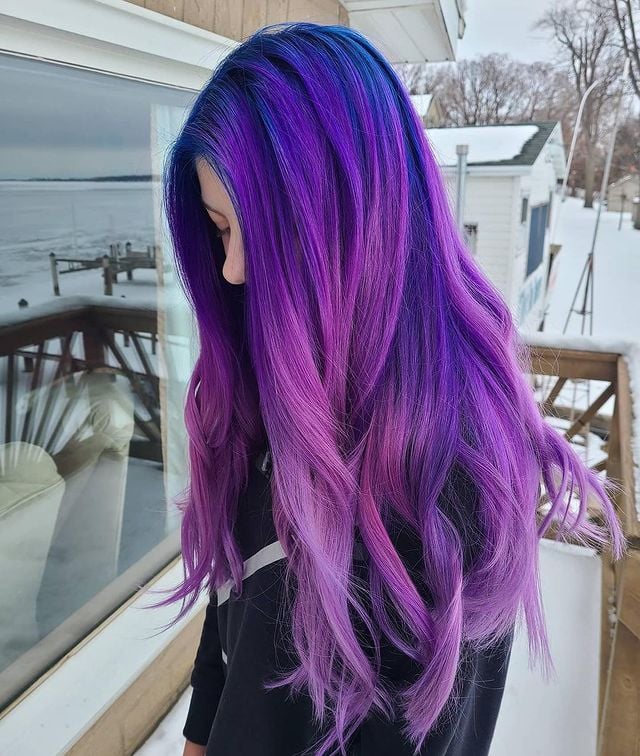 A fade from blue to purple is such a unique and fun way to wear the color. It’s an unexpected combo that just works so well together.