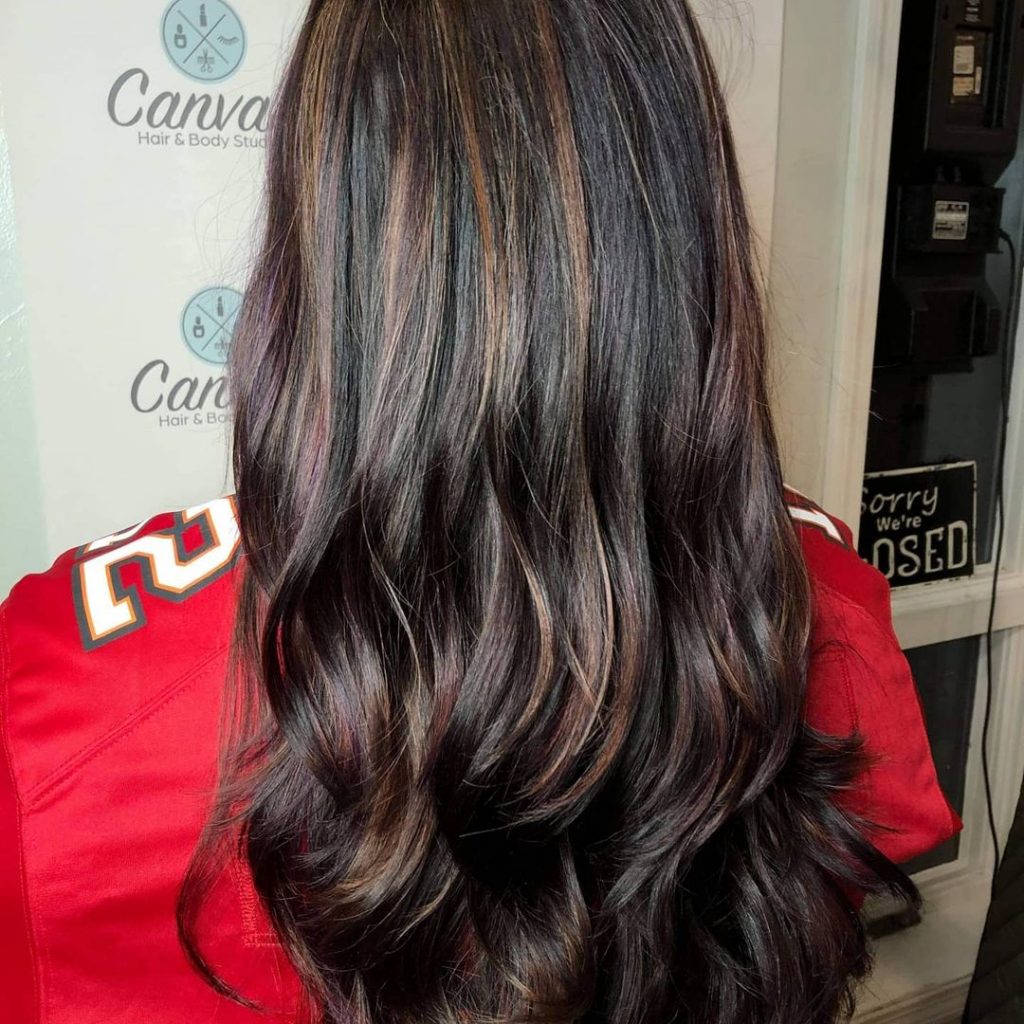 Adding just a touch of purple throughout your hair creates such a fun look. It’s like a little surprise of color every time your hair moves.