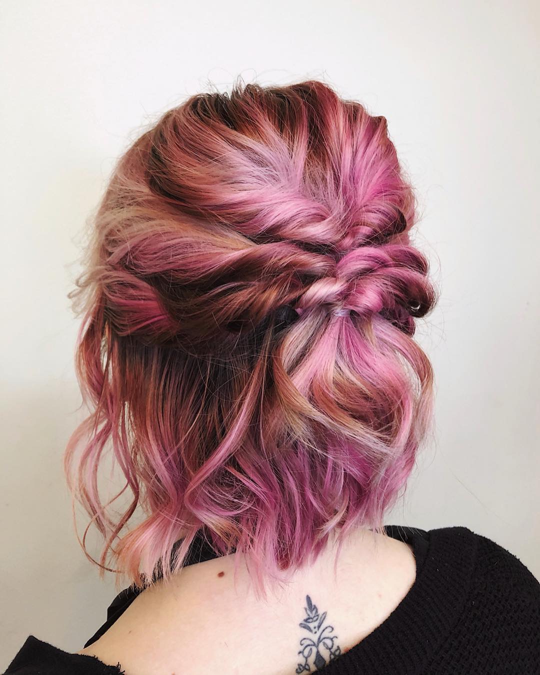 Combining a few twists together results in such a stunning and intricate-looking style. It looks complicated, but it’s a beautiful way to pull everything back.