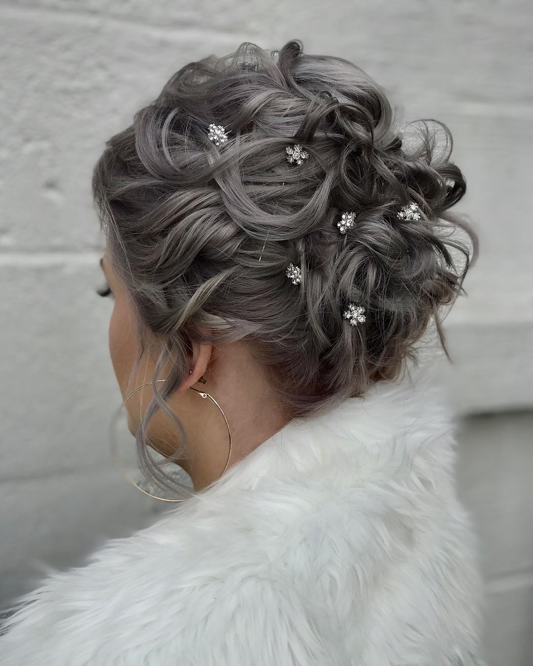 This one is a total showstopper. Start by curling your hair, and then pin the curls up with some really beautiful accessories.