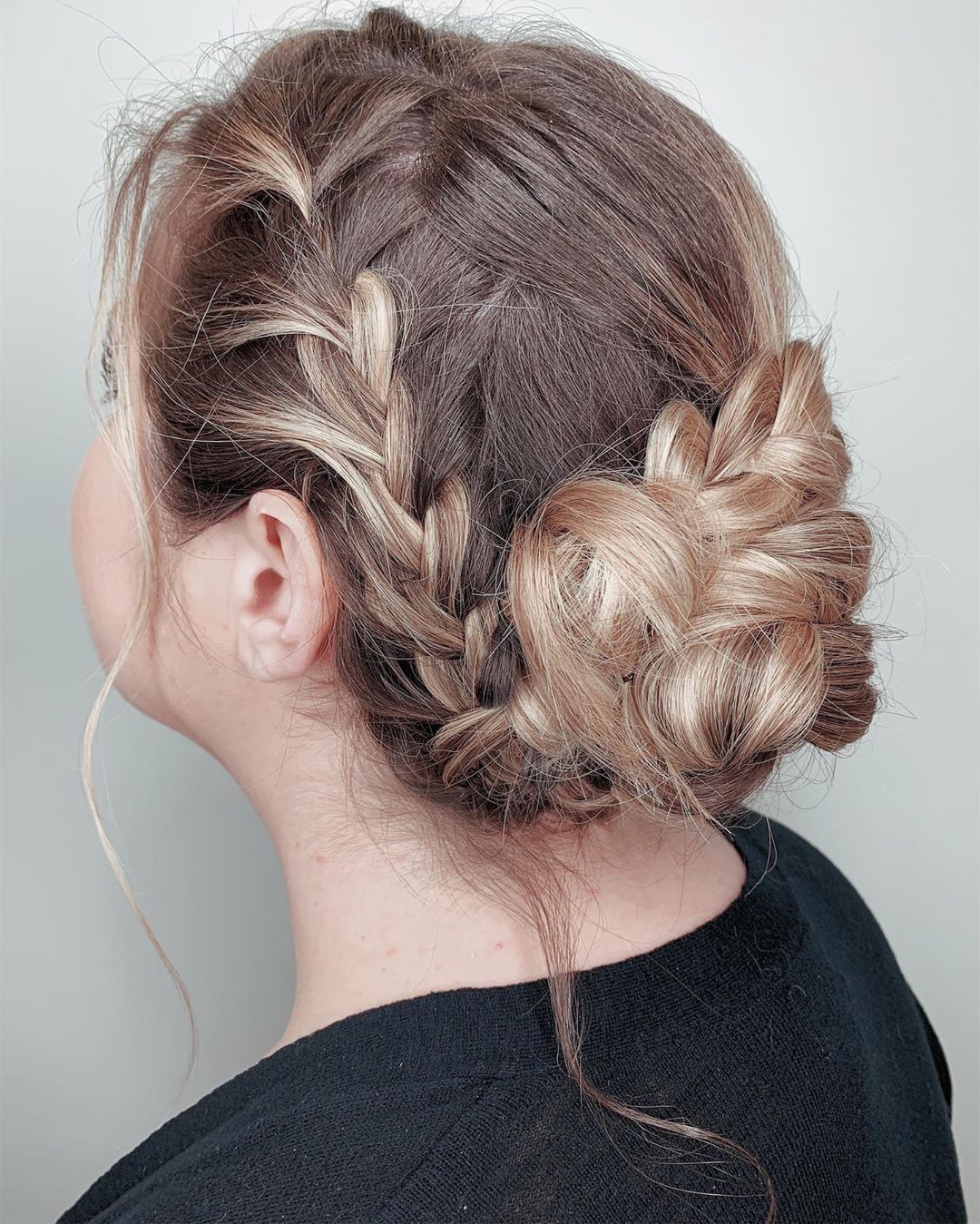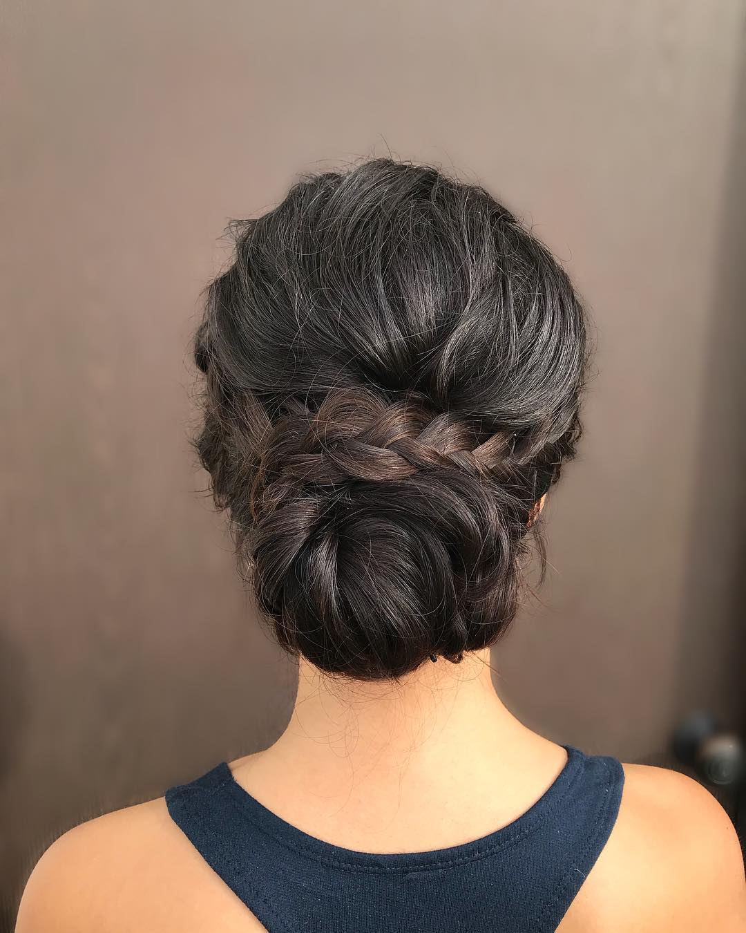 Take your classic updo to the next level by adding a braid.