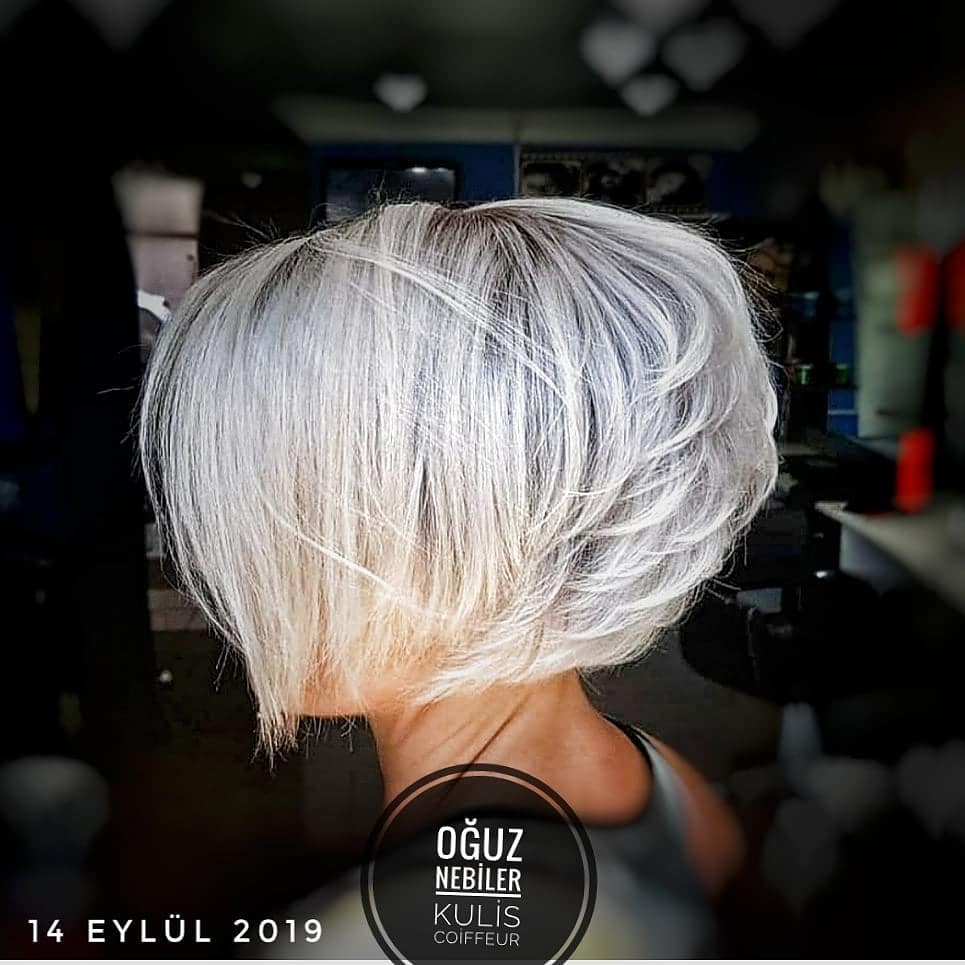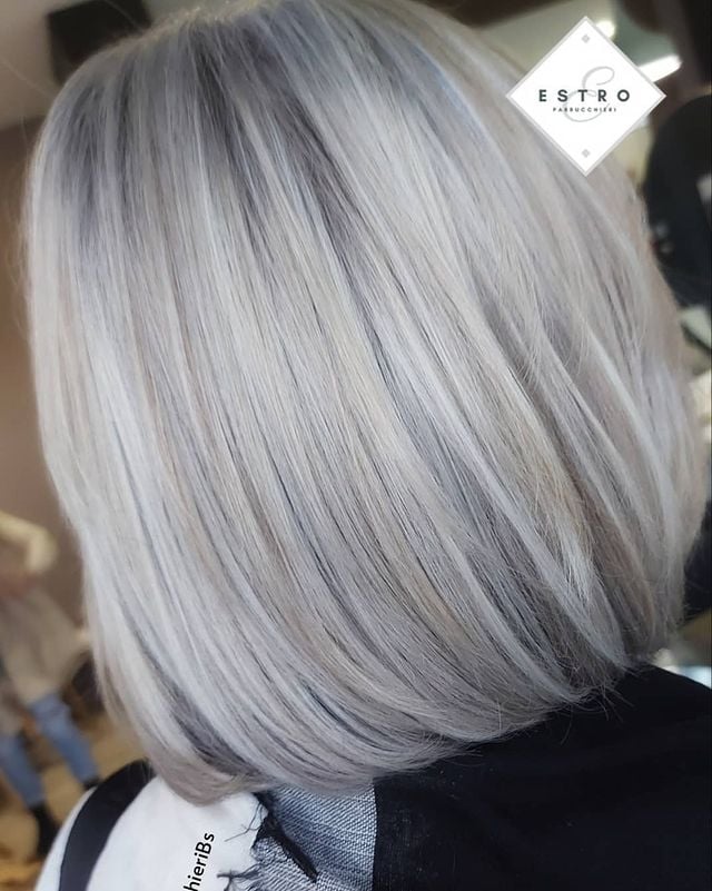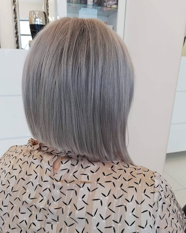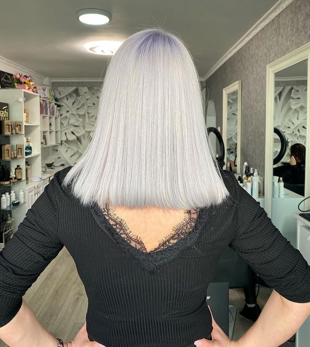 A blunt style with a silver color is a beautiful combination for a fresh look.