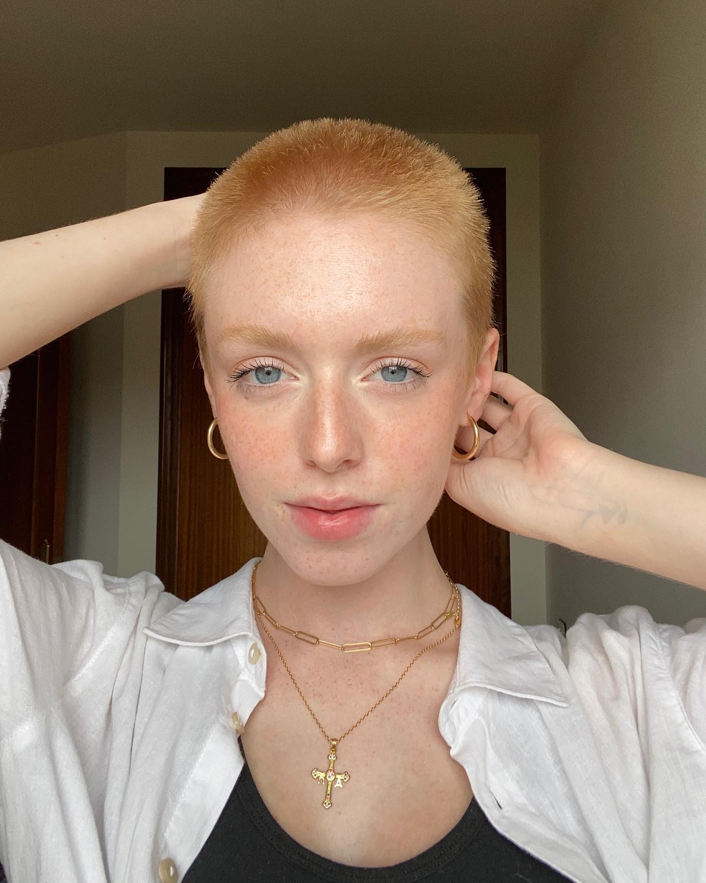 There’s just something about a vibrant color that screams confidence to me. If you’re a natural ginger and you fancy brighter colors, this beauty is for you. Cutting your hair super short really emphasizes it.